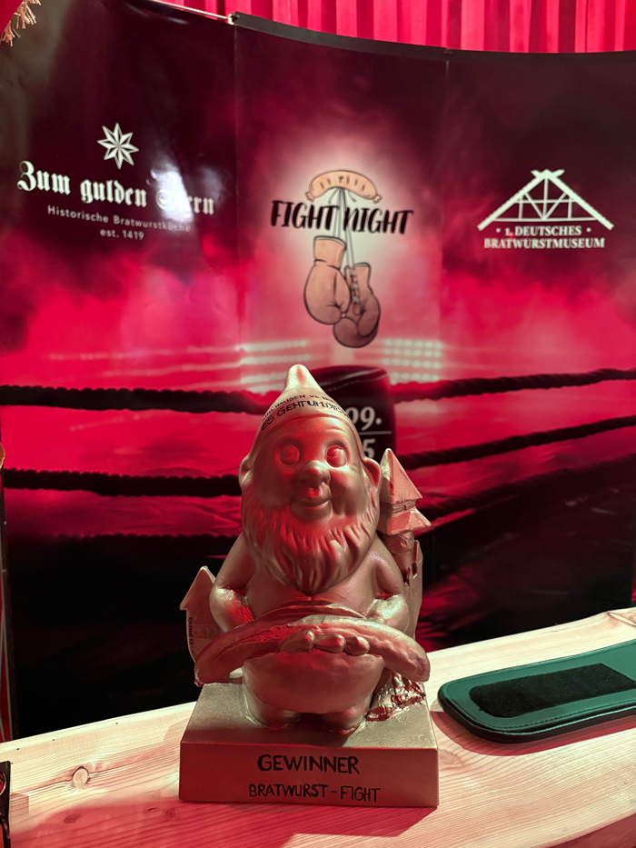 Nürnberg hat das älteste Gebäude zur Bratwurstküche und wir die älteste Urkunde über die Bratwurst. Und dennoch wollten wir es ausfechten. Ähm … ‑boxen.